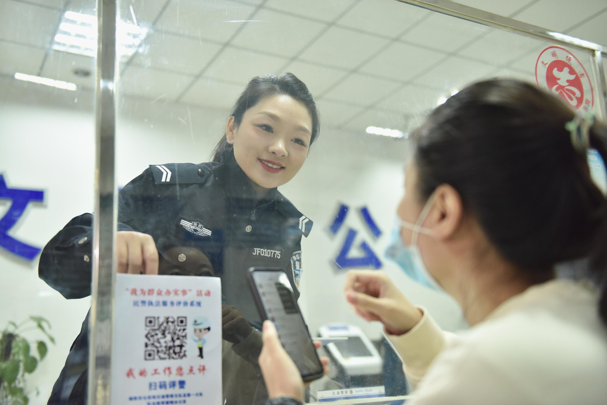 绵阳公安在服务窗口亮出“扫码评警”二维码。