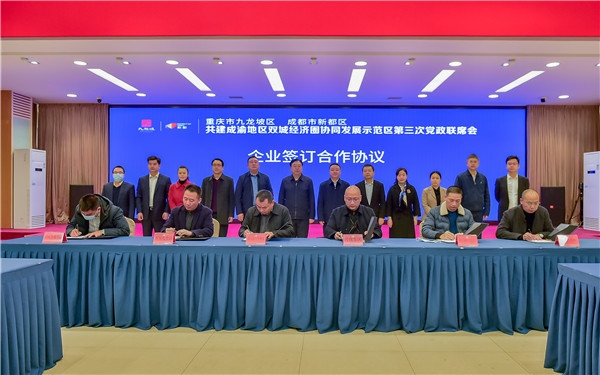 联席会通过了两地协同推进成渝地区双城经济圈“放管服”改革的指导意见,举行了九龙坡区、新都区两地企业签约仪式及“新龙”铝产业链党建联盟授牌仪式。