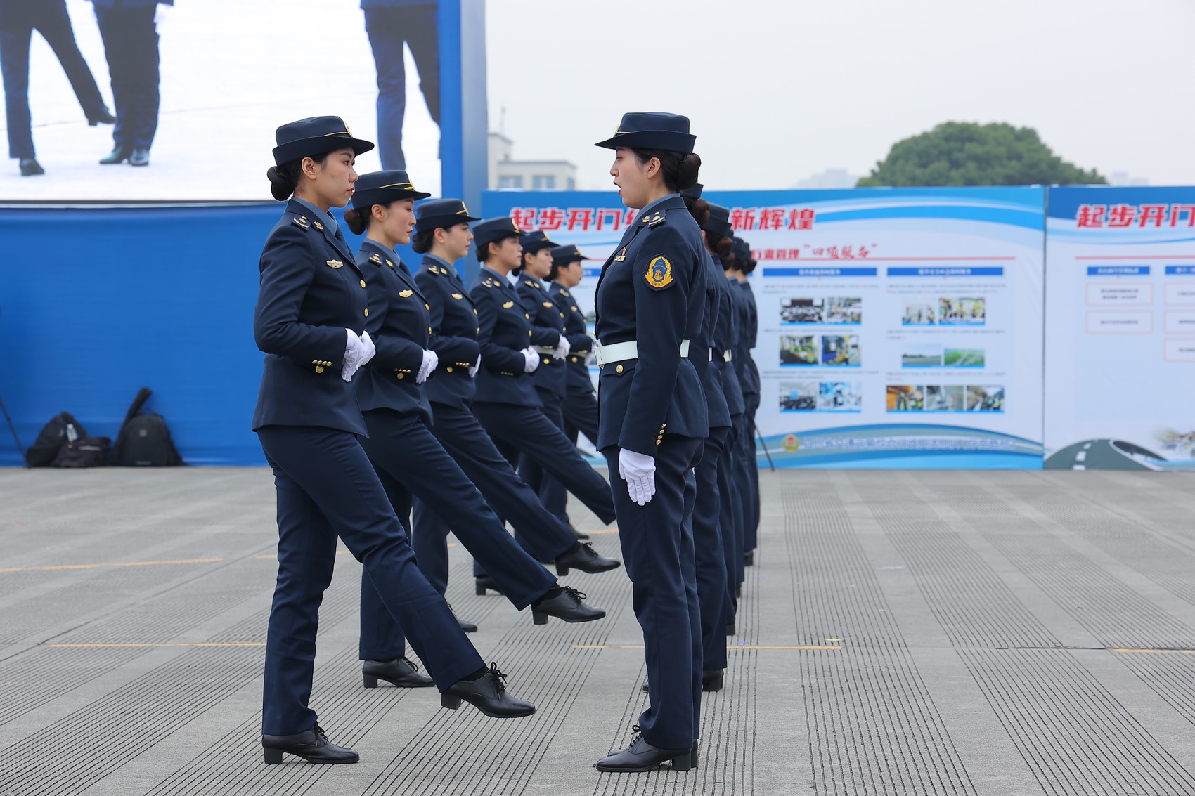 展示活动上,来自省交通执法总队的7支队伍、200余名执法人员,从政治思想建设、内务管理建设、作风形象建设、能力素质建设四个方面,现场展示高速公路交通执法队伍内务管理、仪容风纪检查、交接班礼仪、队列训练、执法检查演练等内容。