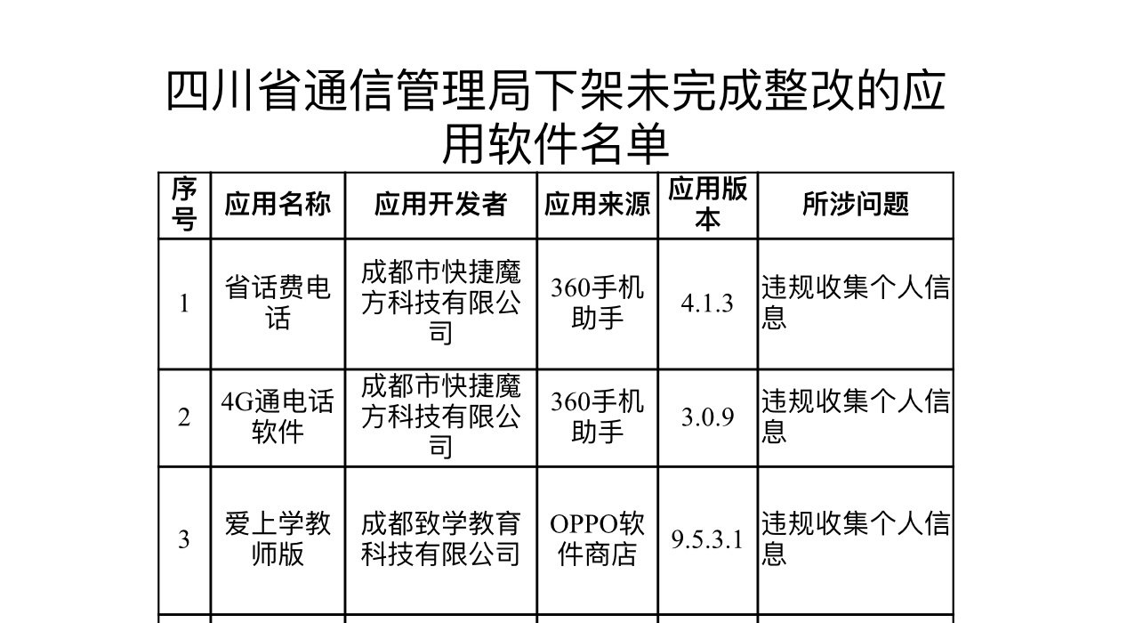 当天,记者从四川省通信管理局获悉,依据《个人信息保护法》《网络安全法》等相关法律要求,该局组织对这3款APP进行下架,要求相关应用商店立即组织对名单中应用软件进行下架处理。
