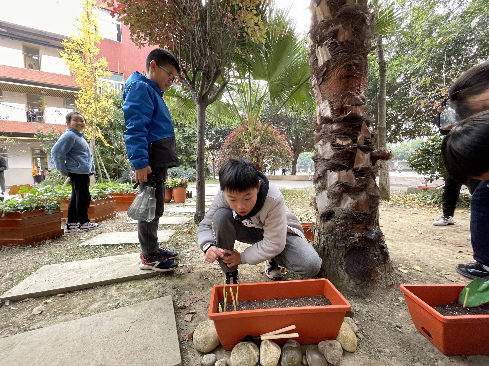 在城市里生活的孩子也能如此亲近土地,该班学生陈诺行的家长也感到惊喜:“‘双减’政策下孩子有了更多的时间,小园地活动进一步释放了校园空间,能让他们体验更广范围的知识技能,希望他们都能有所收获。”