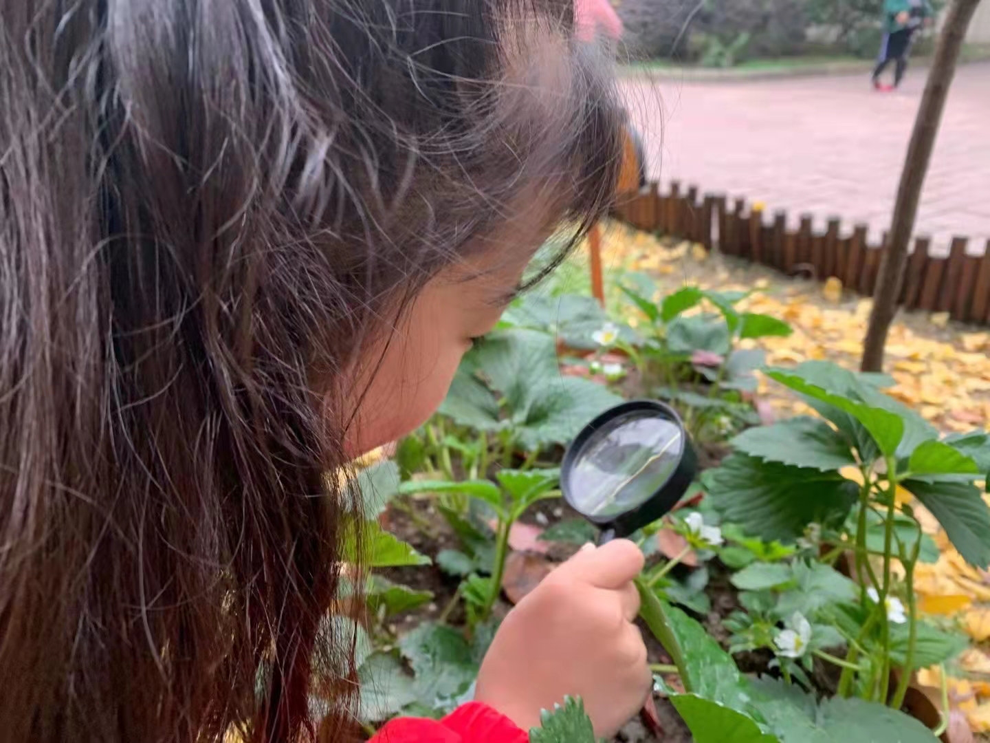 “哇,草莓开始变红了!”“这个栅栏要重新修整一下。”……12月8日上午,成都高新区芳草小学(南区)课间十分钟,各年级的学生们凑在一起,热烈讨论着如何“装修”本班的“小园地”。