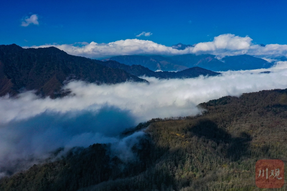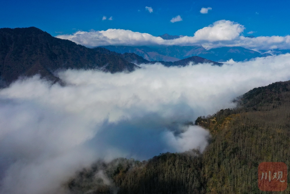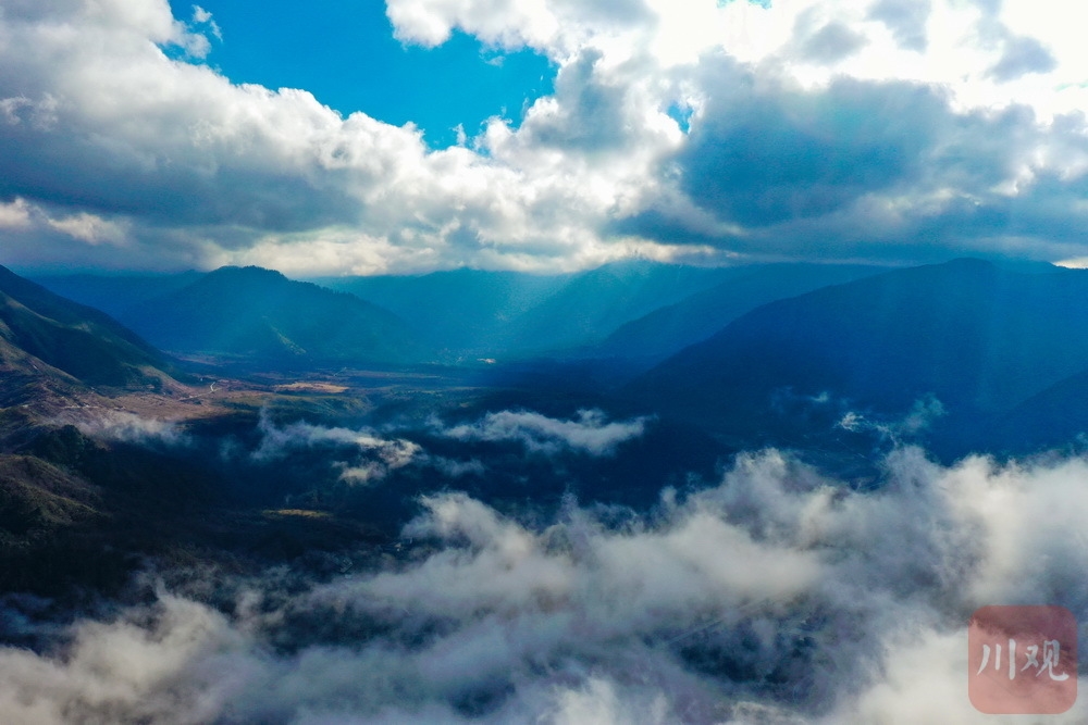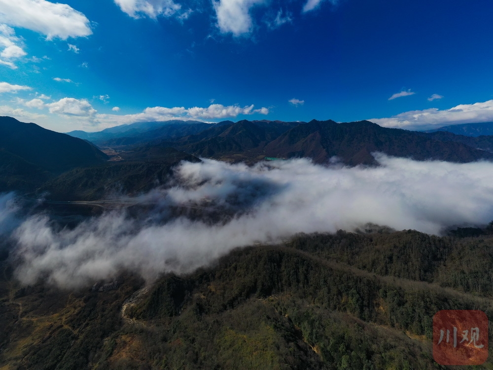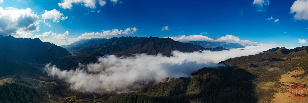12月10日,在雅安最南端的石棉孟获城,时而阳光明媚、时而云雾缭绕,山谷间云海荡漾,与孟获城特有的草海、林海等景观相互“交织”,形成了一幅幅美丽的画卷。