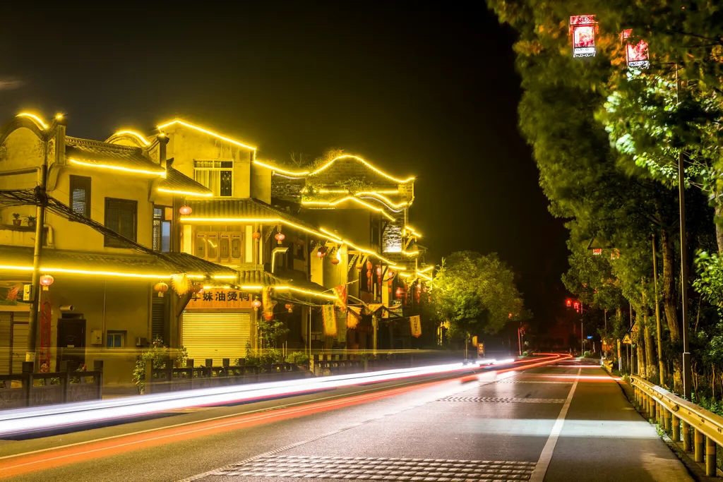 改造后,夜晚路灯开启时,路面及两侧道路都被“点亮”,实现了美观不减、亮度翻番,让这座既饱含川西民居风格,又汇聚浓厚人文历史韵味的古镇成为夜晚的一道风景线。
