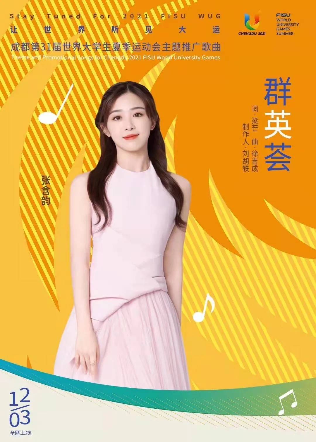 在接到歌曲《群英荟》的演唱邀请时,张含韵什么都没有多想就爽快地答应了,她说这是作为从四川走出去的她的荣幸。这一次为成都大运会这样的国际性赛事运动会献唱推广歌曲,是张含韵难得的经历。她说道:“每当回到家乡,‘自我’就变得十分渺小,每个在外打拼的游子谈到家乡时都会是满心的欢喜与澎湃的乡愁。”她希望能够用歌曲让世界感受到我们的潇洒与热情,她期待五湖四海的朋友们明年都能够相聚这里。