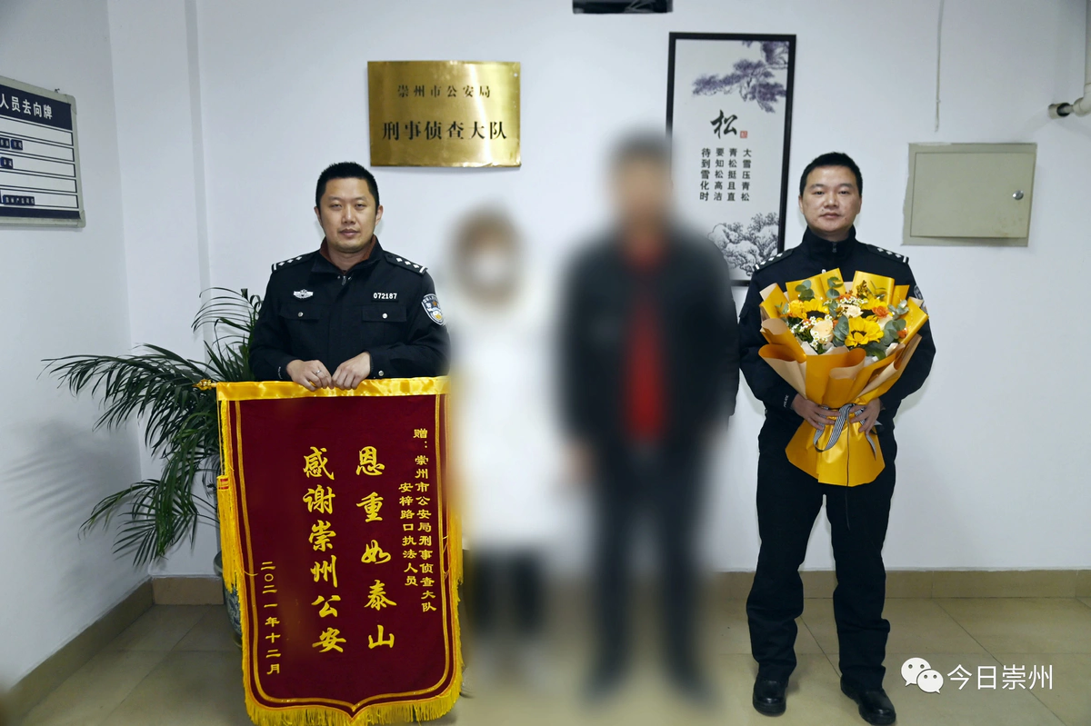 12月6日,李先生的妻子出院,他们带着锦旗和鲜花来到崇州市公安局表示感谢。李先生说:“大家都说警民一家亲,我通过这件事切身感受到人民警察为人民!”