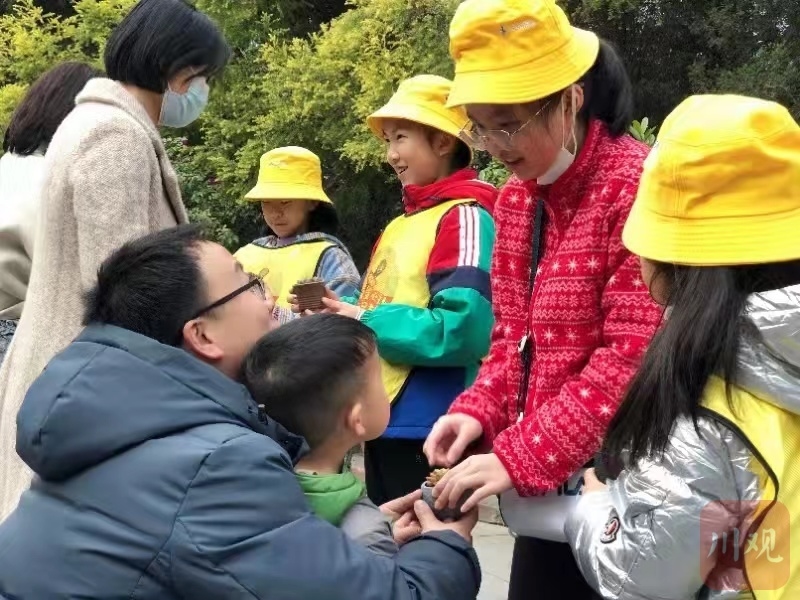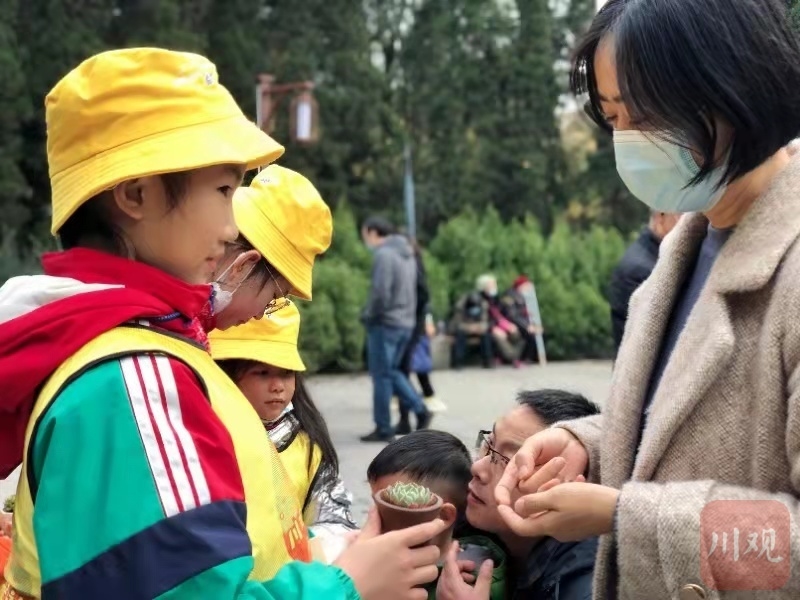 12月12日,川观朵朵志愿服务队的60余名小朋友走进人民公园,开展献爱心活动。孩子们在工作人员的指导下,将一盆盆多肉植物亲手种植在精心挑选的花盆里,再将“劳动成果”在游客中进行爱心义卖。