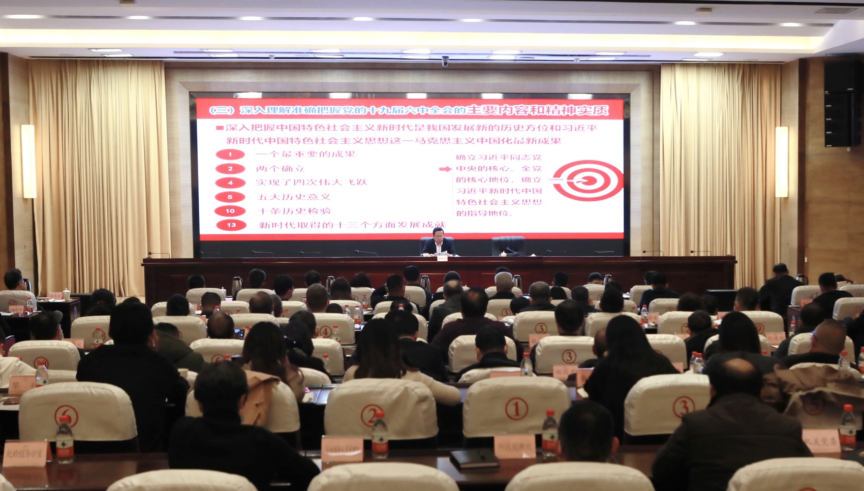 省国资委党委专职副书记吴晓曦主持宣讲报告会。省委宣讲团第十四分团(企业分团)成员和省国资委在家委领导、厅级干部出席宣讲报告会。党组织关系在省国资委党委的中央在川企业分管宣传工作领导,省属企业相关领导和宣传部门负责同志,省国资委委机关、驻委纪检监察组各处室(中心)负责同志,共计180余人参加宣讲报告会。