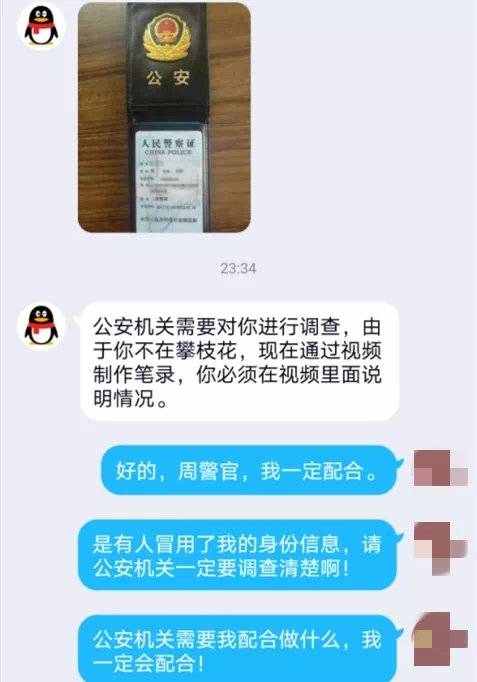 随后,阿伟终于接到“攀枝花市公安局”的电话,一位自称“周警官”的人为他做好记录后,以“要做视频笔录”为由,添加了阿伟的QQ。“周警官”还拿出“警官证”以证身份,完全打消了阿伟的疑虑。做“视频笔录”的过程中,阿伟知无不言言无不尽,连银行卡支付密码都悉数“交代”。