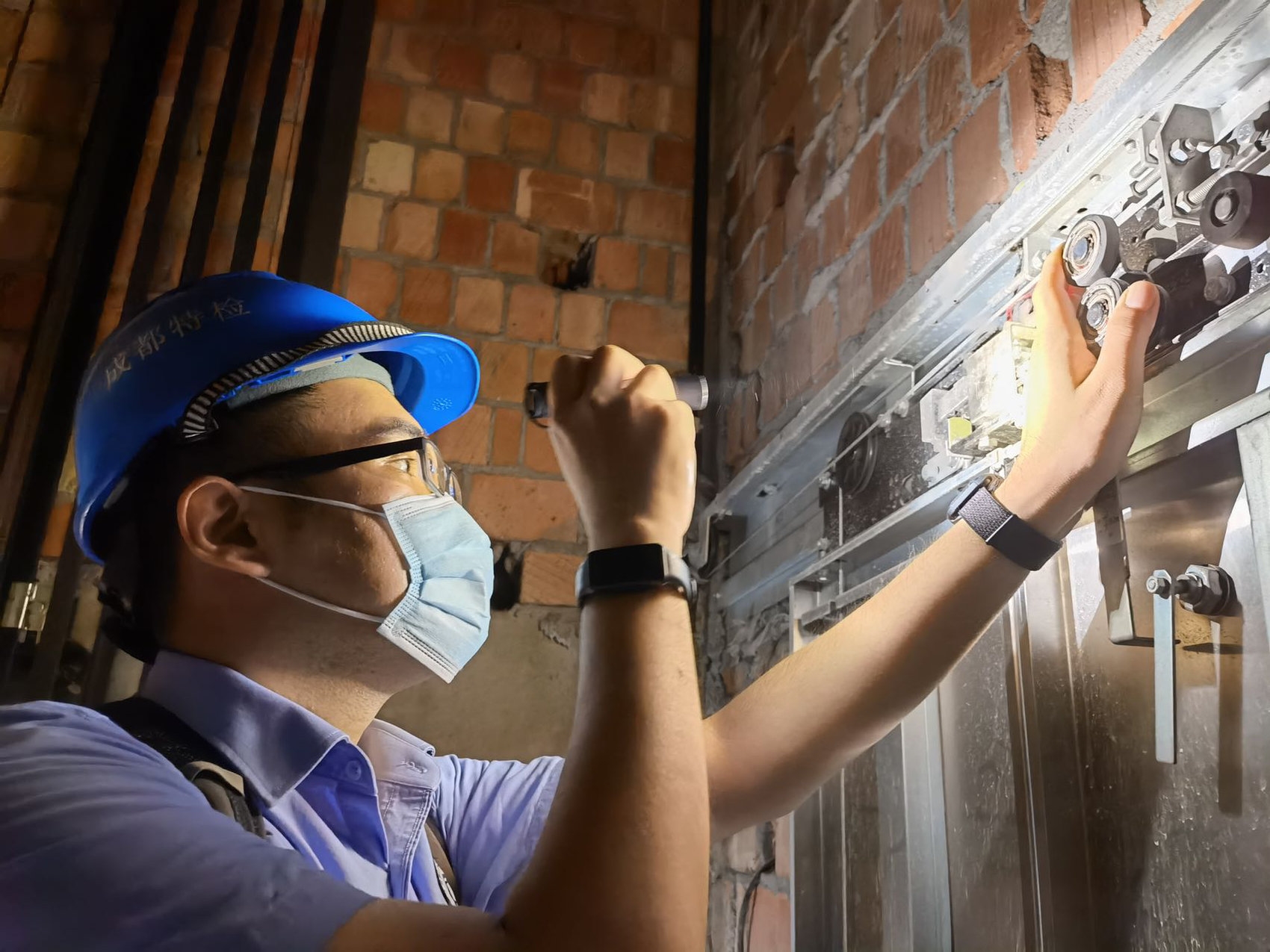 特检专家正在检测电梯