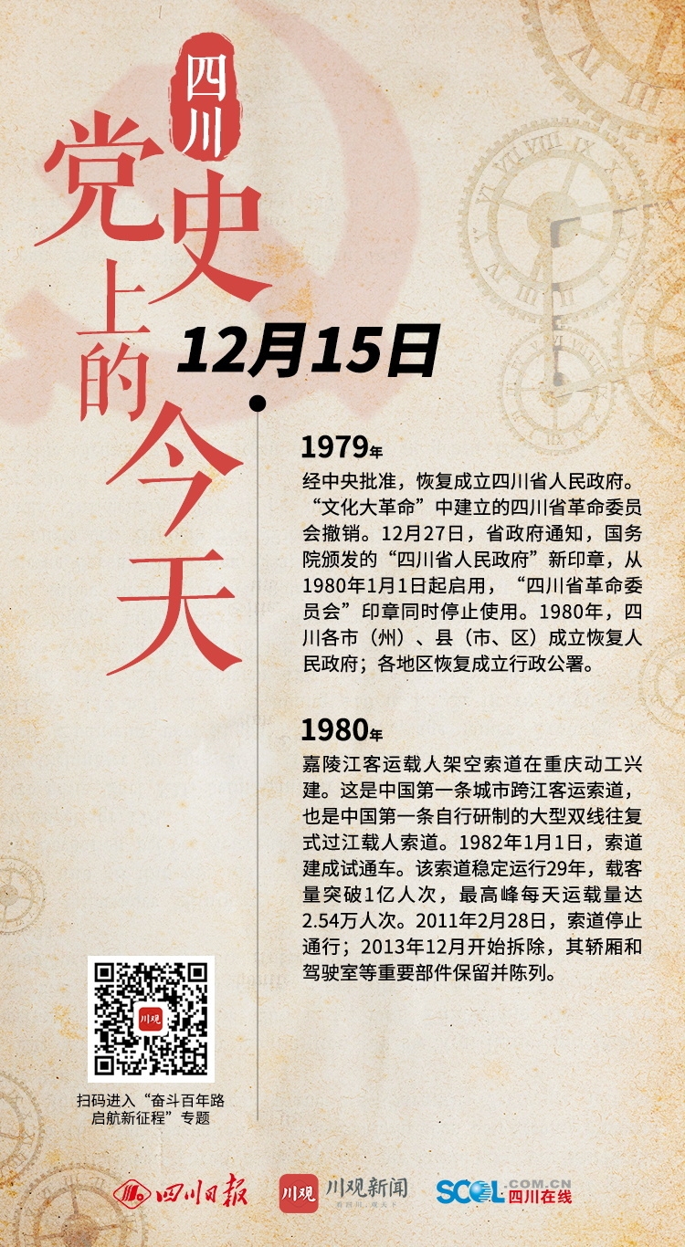 1980年 嘉陵江客运载人架空索道在重庆动工兴建。这是中国第一条城市跨江客运索道,也是中国第一条自行研制的大型双线往复式过江载人索道。1982年1月1日,索道建成试通车。该索道稳定运行29年,载客量突破1亿人次,最高峰每天运载量达2.54万人次。2011年2月28日,索道停止通行;2013年12月开始拆除,其轿厢和驾驶室等重要部件保留并陈列。