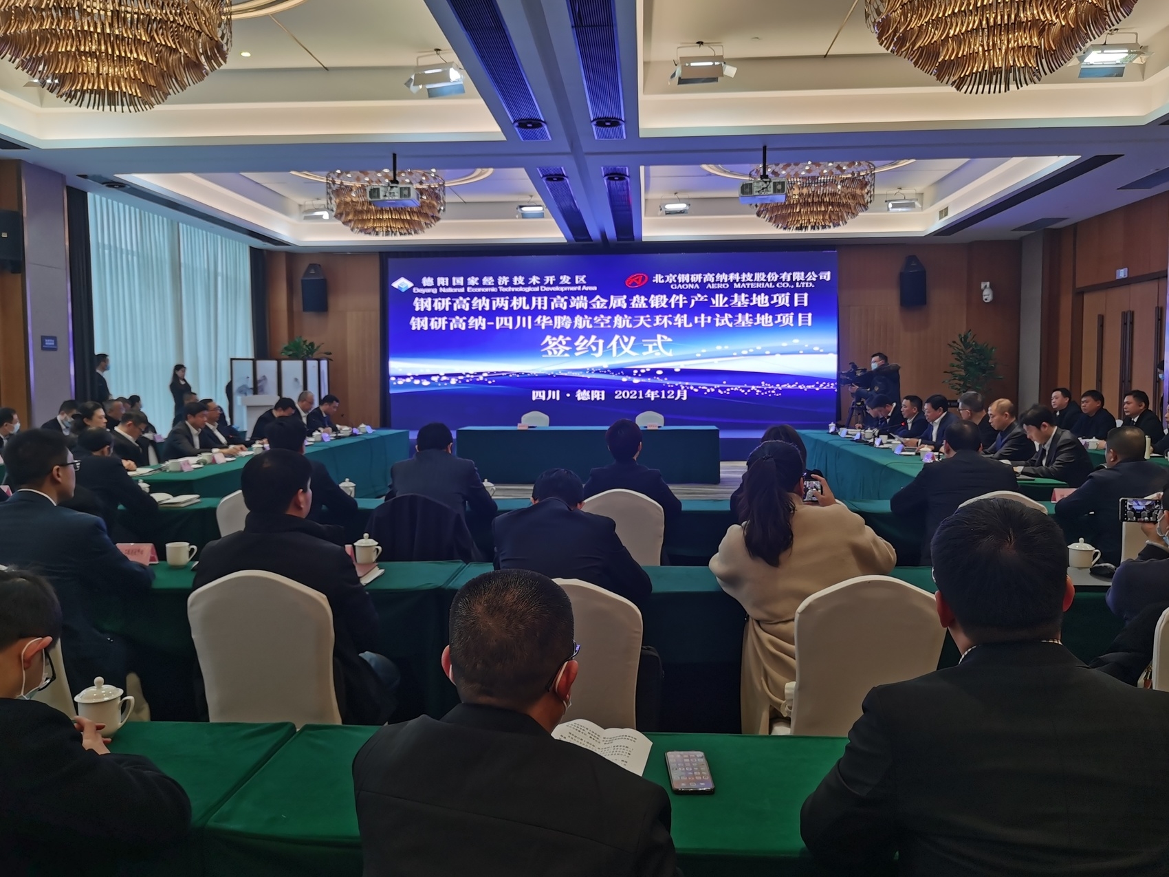 12月15日上午,德阳经开区举行钢研高纳两机用高端金属盘锻件产业基地项目及钢研高纳—四川华腾航空航天环轧中试基地项目签约仪式。