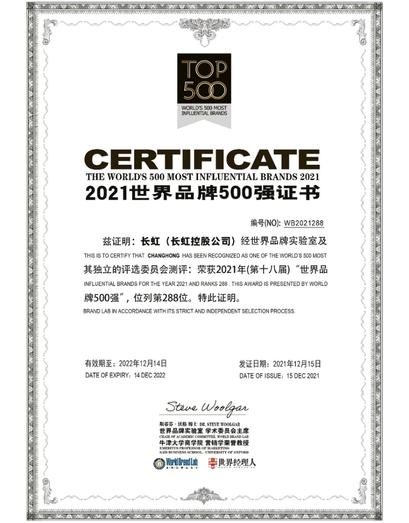 近日,世界品牌实验室(WorldBrandLab)正式发布2021年《世界品牌500强》排行榜,长虹等中国各领域的44个品牌凭借亮眼表现成功入榜。在今年6月份发布的2021年《中国500最具价值品牌》分析报告中,长虹品牌价值达1736.29亿元人民币,再创新高。