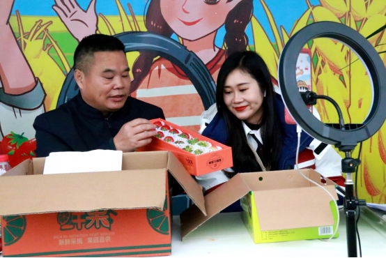 当日14时30分,大赛启动仪式正式开始。现场设置产品展示区、特色化定制直播间,学员“现学现卖”开启“直播带货”模式,无论是甘甜多汁的大雅贡柑、爱媛橙,可爱饱满的小番茄、优百惠草莓,或是肉质细嫩、膏似凝脂的洪安大闸蟹,无一不令人垂涎欲滴。