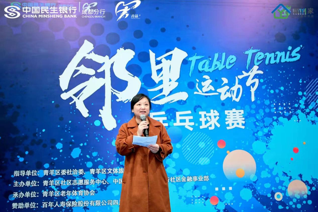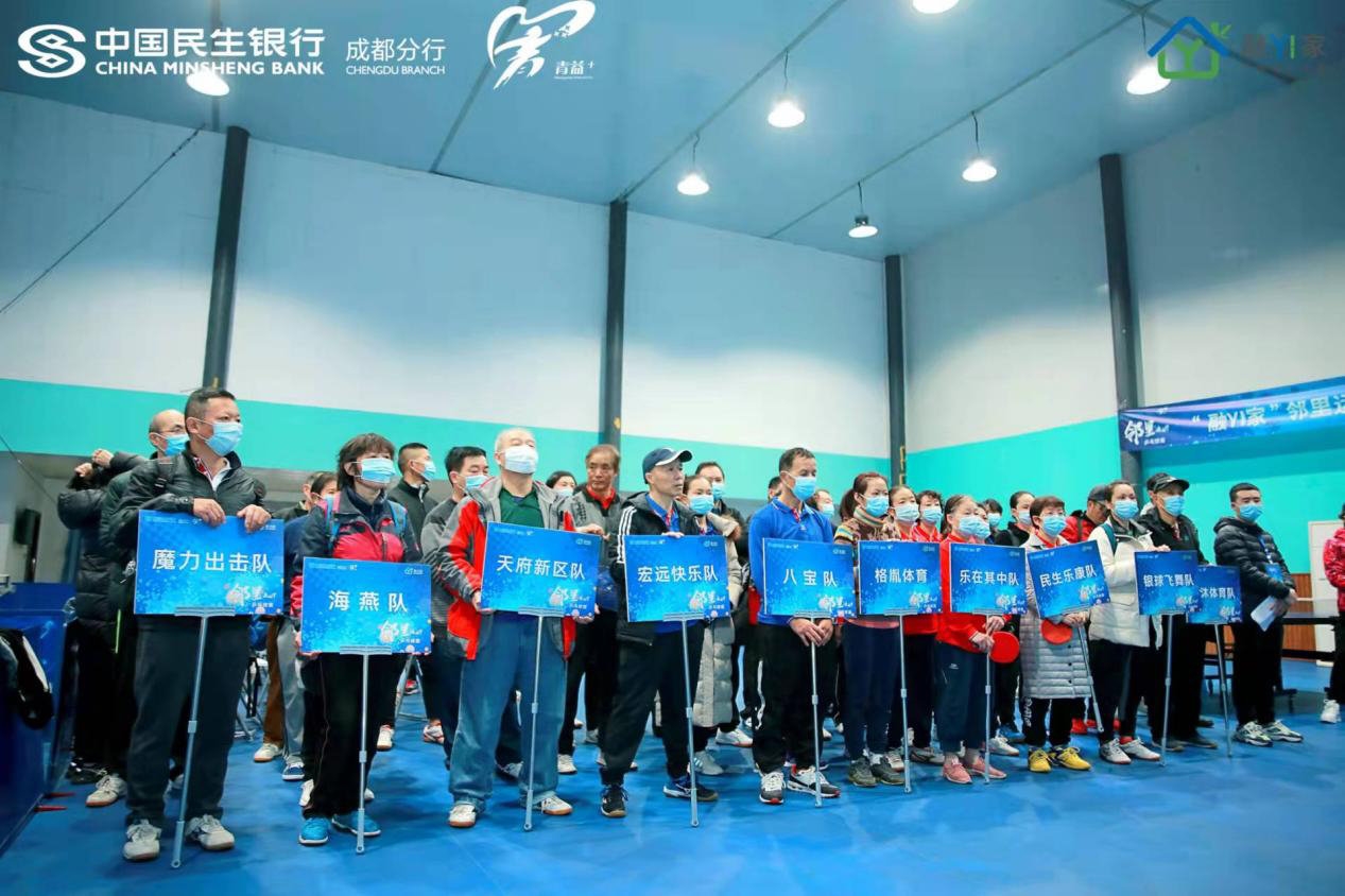 12月14日,“融YI家”邻里运动节乒乓球赛在成都青羊区正式拉开帷幕,本次赛事共集结了68支参赛队伍,将在12月内通过六场比赛角逐出冠、亚、季军,同时评选出3支最佳人气参赛团队。这也是11月2日中国民生银行成都分行携手成都青羊区委社会发展治理委员会推出“融YI家”社区志愿服务品牌后的首场活动。