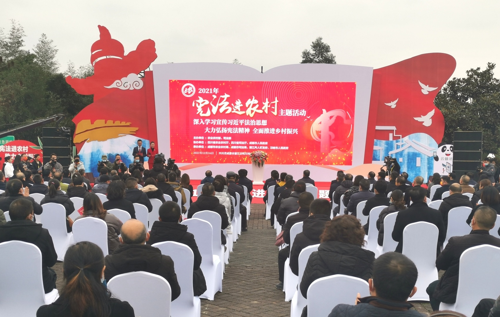 12月16日,2021年全国“宪法进农村”主题活动在成都市蒲江县明月村成功举办,本次活动由农业农村部、司法部主办,四川省农业农村厅、四川省司法厅、成都市人民政府协办,成都市农业农村局、成都市司法局、蒲江县人民政府、邛崃市人民政府承办。