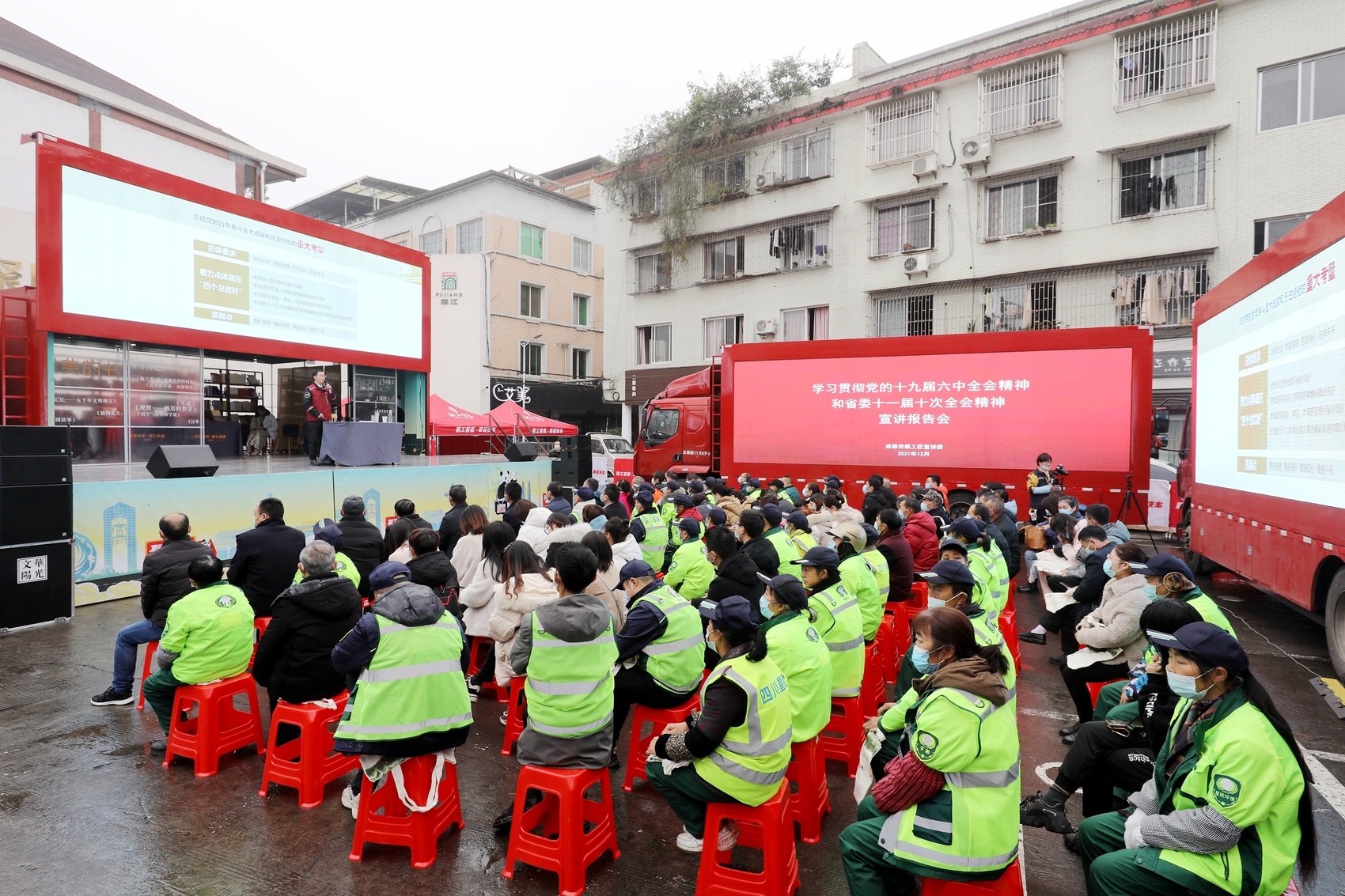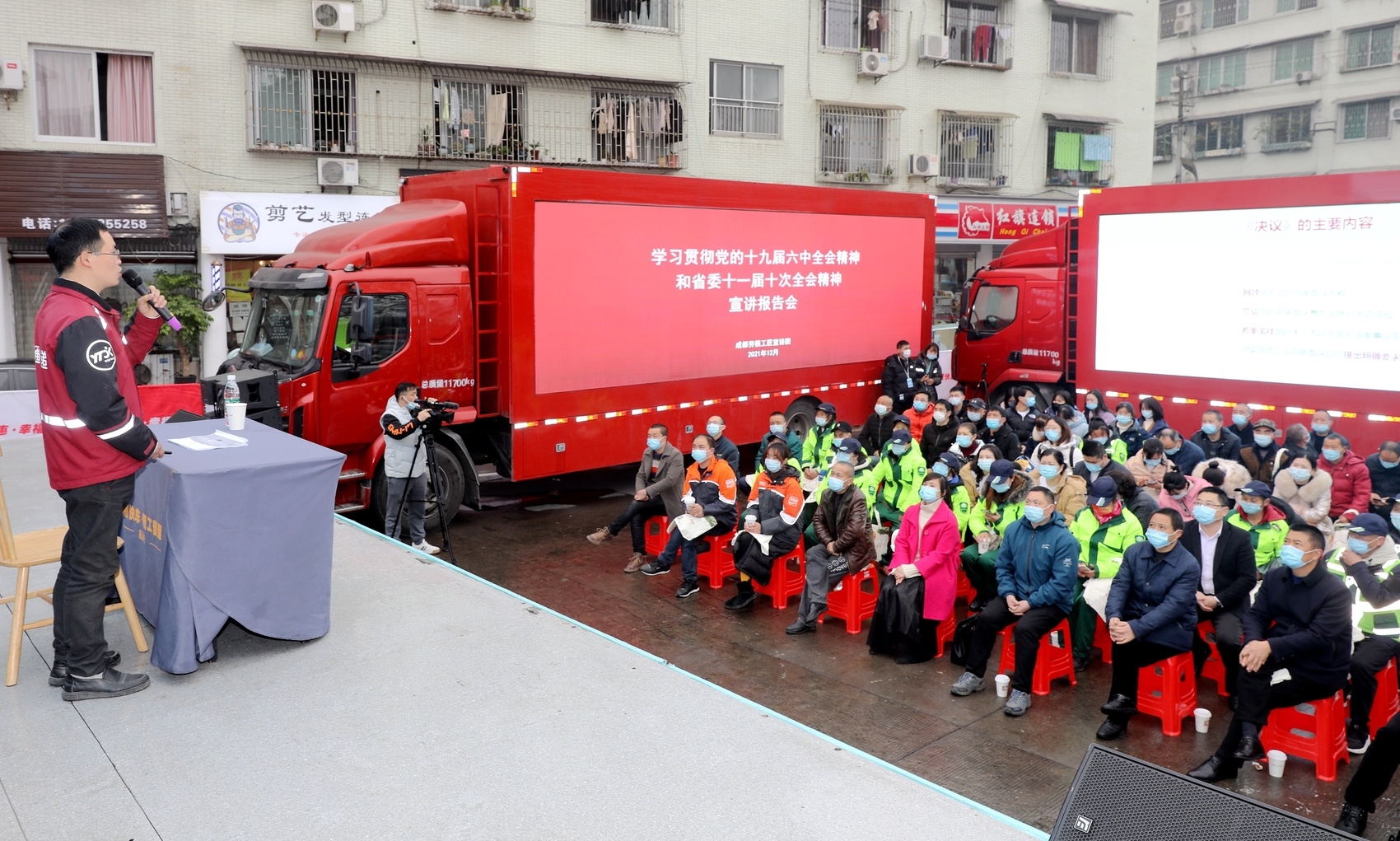 宣讲活动邀请全国劳动模范罗卓红和全国邮政行业劳动模范、成都工匠唐建,以学习党的十九届六中全会和省委十一届十次全会精神为主题,结合自身工作实际,作了精彩的宣讲。