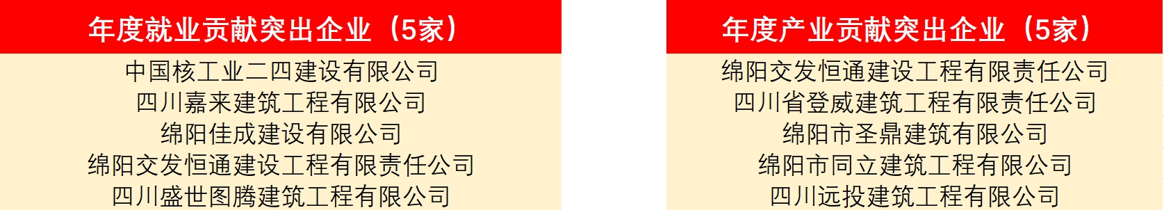 据了解,2020年,绵阳全市建筑业总产值 842.6 亿元,同比增速 11.5%,建筑业总产值在 GDP 的比重为 9.7%。为激励先进,此次表扬奖励共分为“年度建筑业纳税贡献突出企业”、“年度建筑业龙头企业”等7个单项先进。评选工作由绵阳市住建委牵头组织,涉及企业年度纳税金额、建筑产值数据、缴纳社保金额、“绵州杯”优质工程等多项指标。