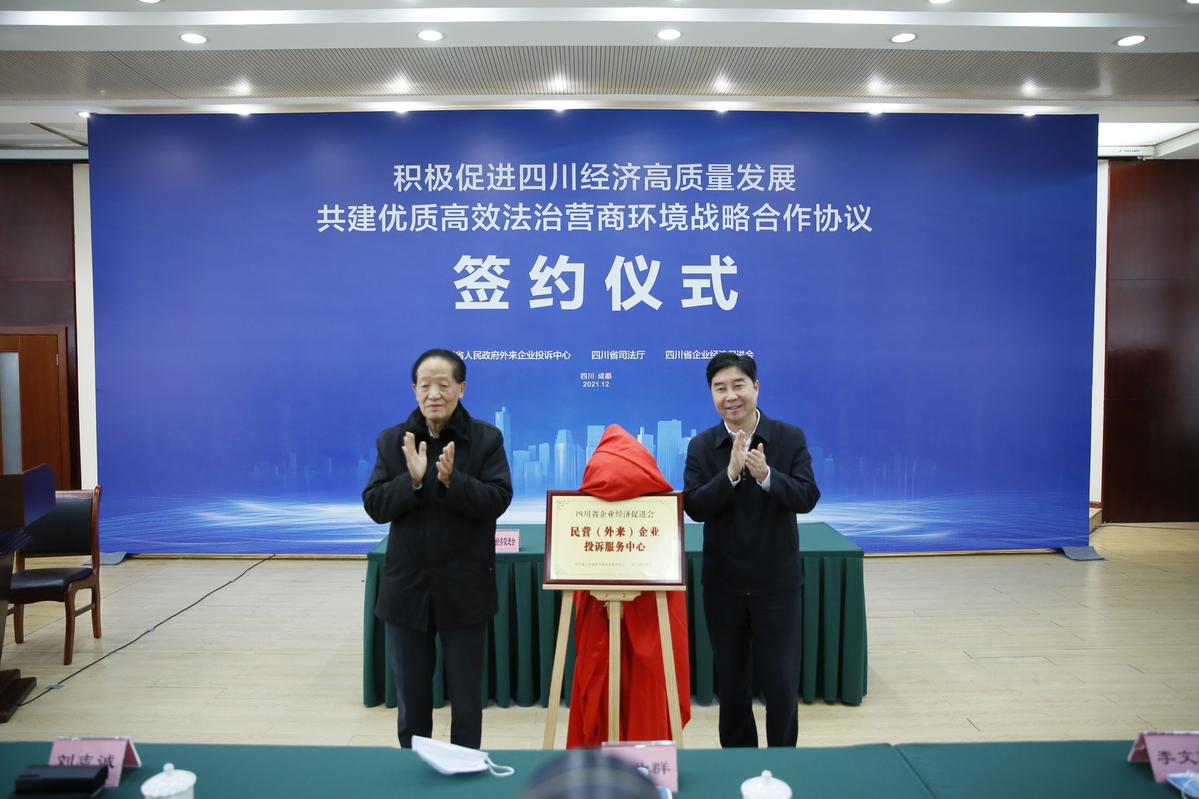 12月17日,由四川省人民政府外来企业投诉中心、四川省司法厅与四川省企业经济促进会联合主办的“积极促进四川高质量发展共建优质高效法治营商环境战略合作协议”签约仪式在成都举行,标志着四川省企业经济促进会民营(外来)企业投诉服务中心正式成立。