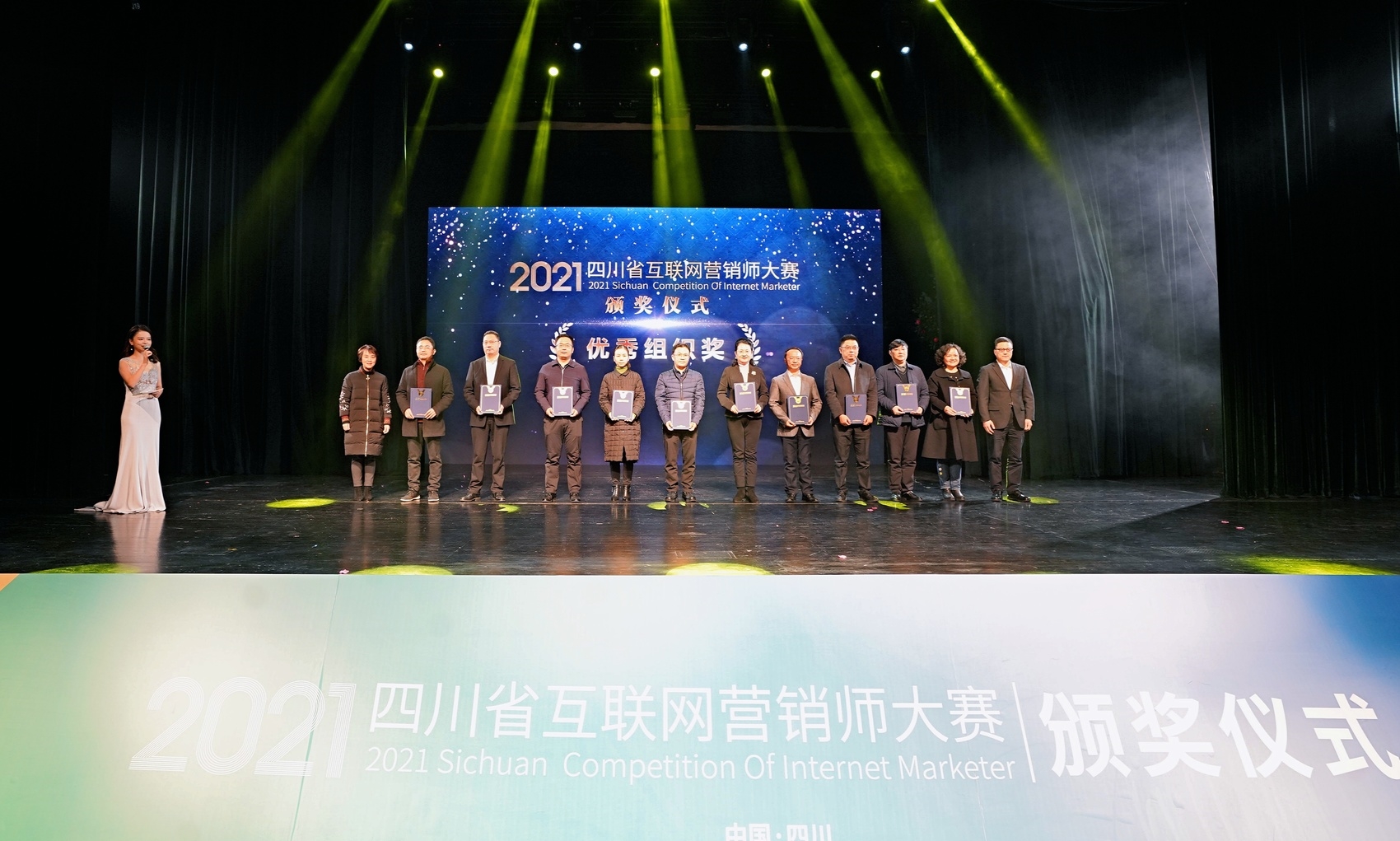 12月17日下午,四川省2021年互联网营销师大赛颁奖仪式在成都城市音乐厅举行。颁奖仪式以话剧形式展现了互联网营销师行业发展趋势,并由主办单位通报了本次大赛概况。