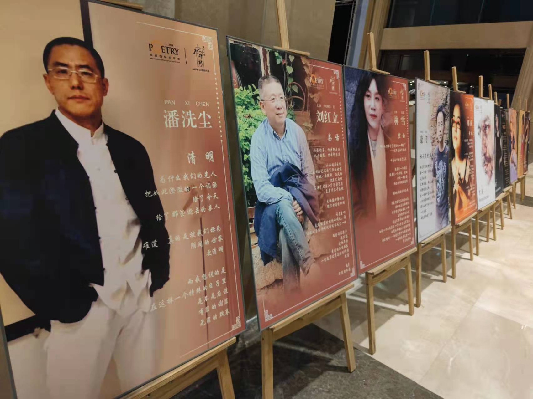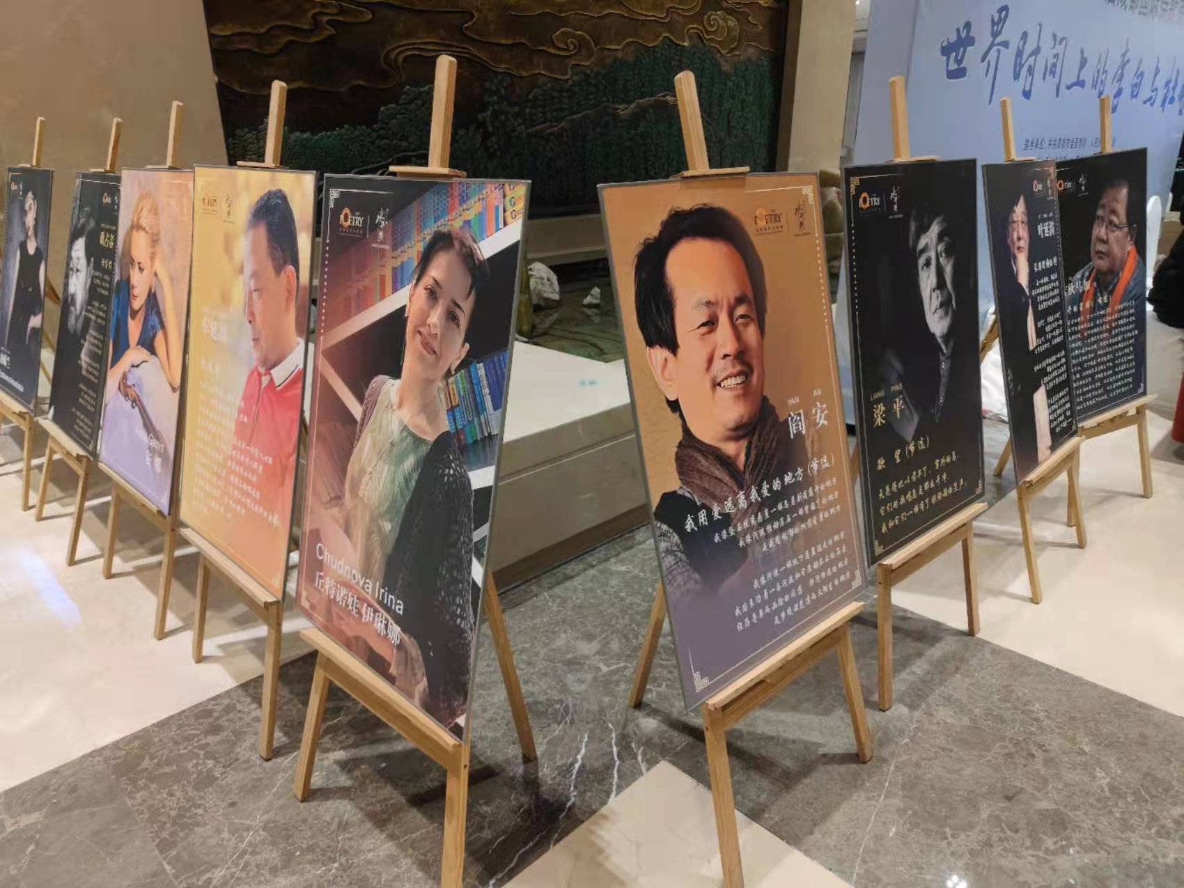 现场设置的参会诗人作品展板