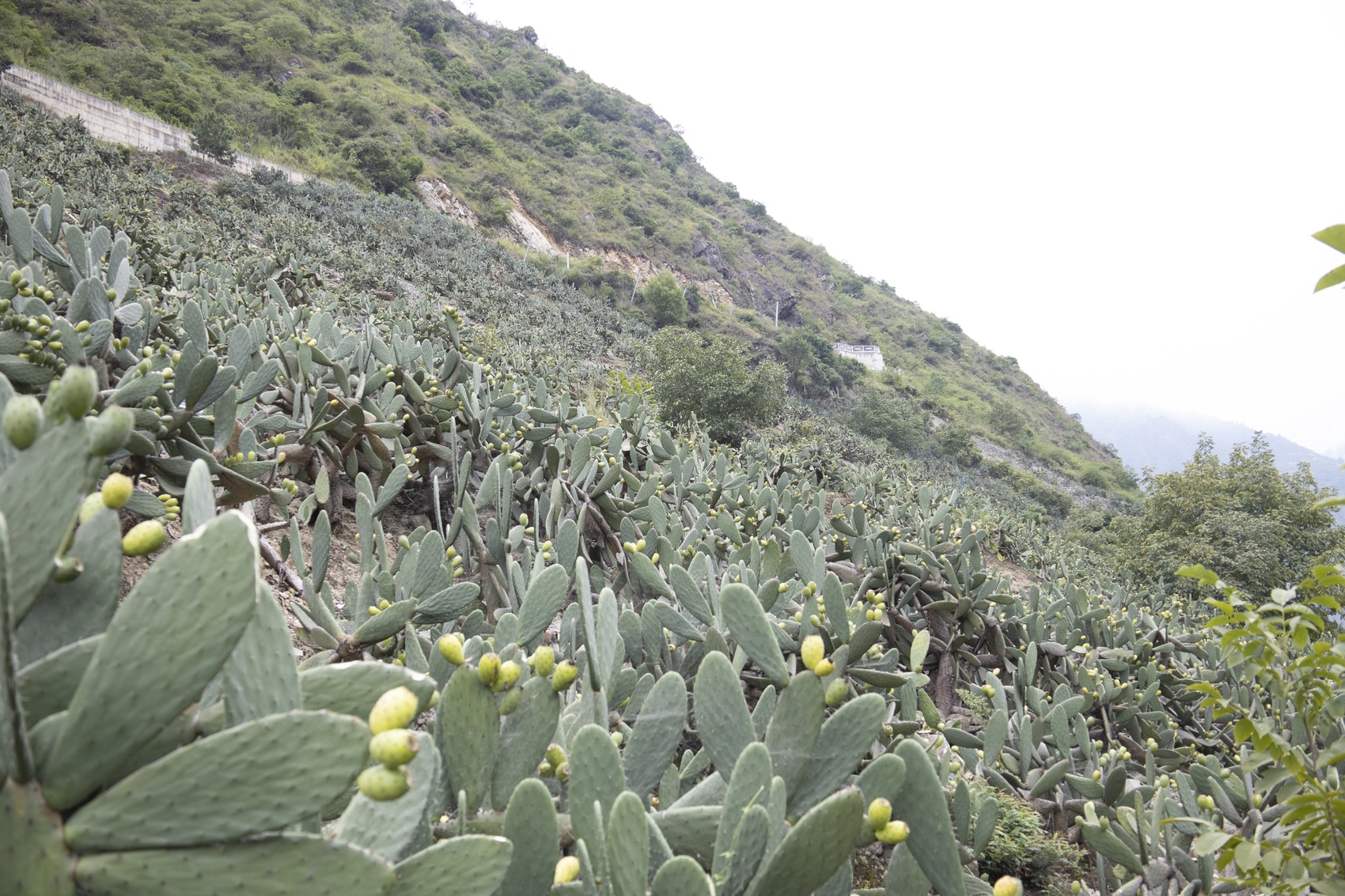 仙桃是生长在乱石丛中的仙人掌所结的果子。泸定地处大渡河流域,海拔1500米以下的区域存在气候干燥、土壤贫瘠、植被覆盖率低、水土流失严重等问题。当地村民利用仙人掌生长特性,在荒山荒坡开始大规模种植。在桐子林村,就有78户村民家栽种仙人掌。