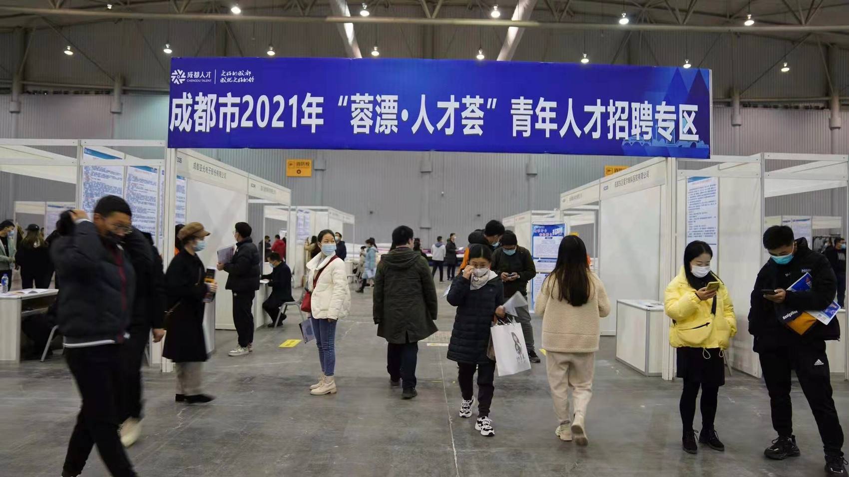12月18日,2021成都冬季大型人才招聘会暨“蓉漂人才荟”青年人才招聘会举行,参会单位共490家,提供岗位19639个,平均月薪7949元。