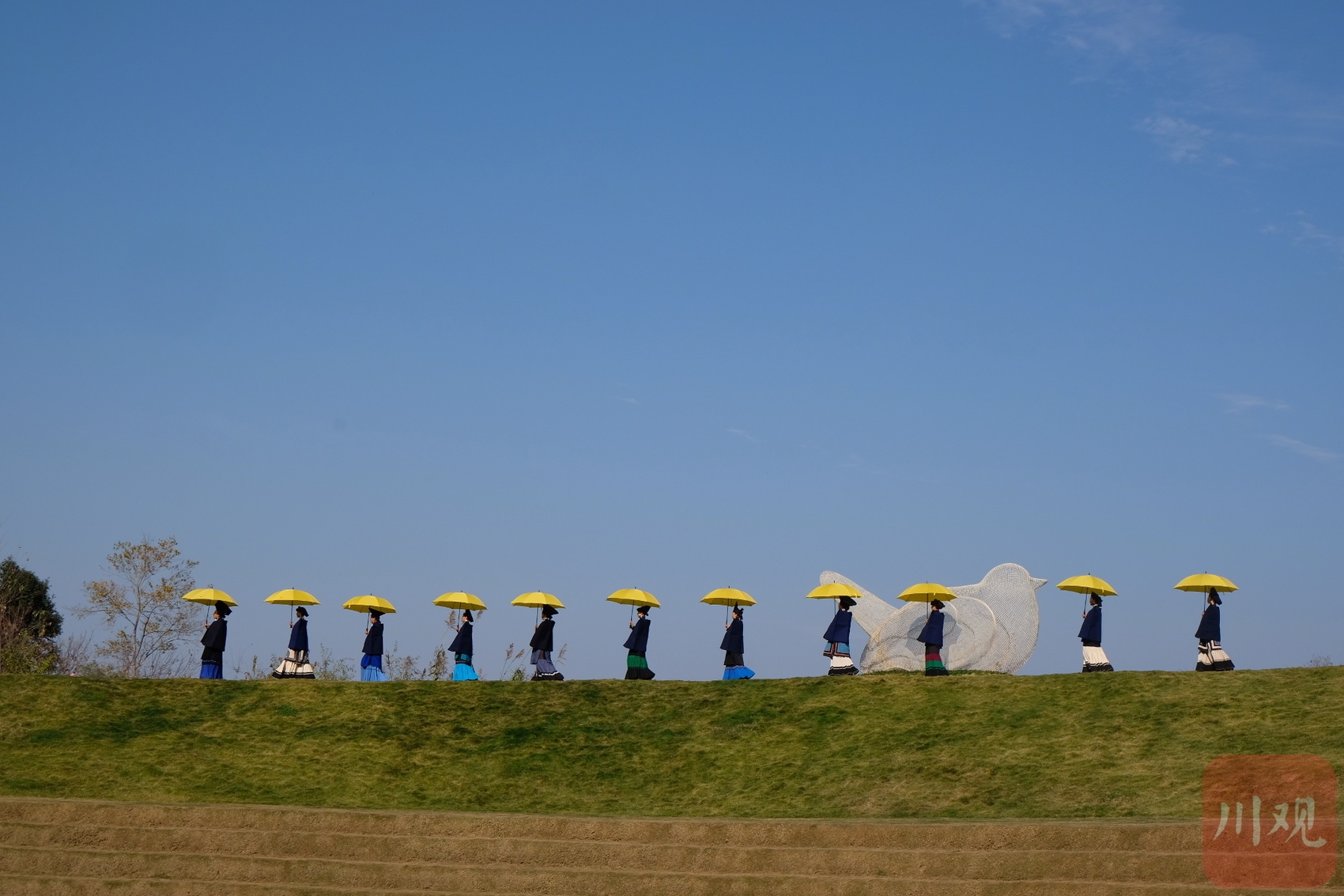 冬日的暖阳洒在黄绿色的草坪上,远处蓝天上飘着几缕薄薄的白云,在西昌谷剧场,歌者们围着原型草垛剧场而坐,敲着鼓,缓缓走向舞台,一场充满“仪式感”的演唱即将开始……