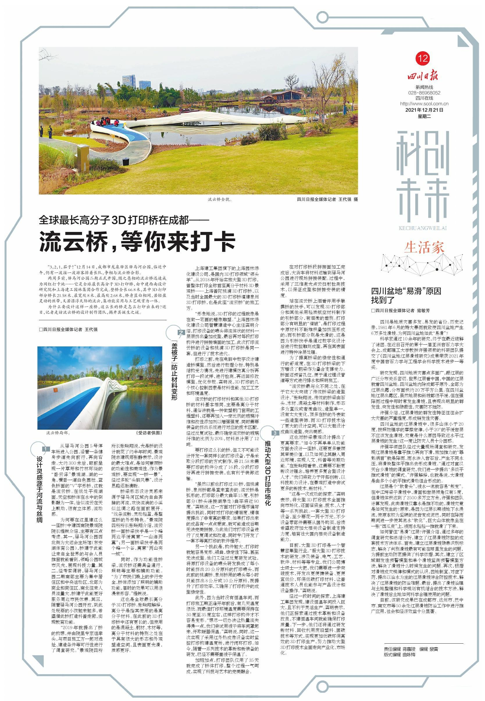 12月21日,新出版的《四川日报》用四个版集中展现2021年四川的科技创新成果。从科技界高光时刻到“不一般”的实验室,从“云端”上的花椒到全球最长高分子3D打印桥……