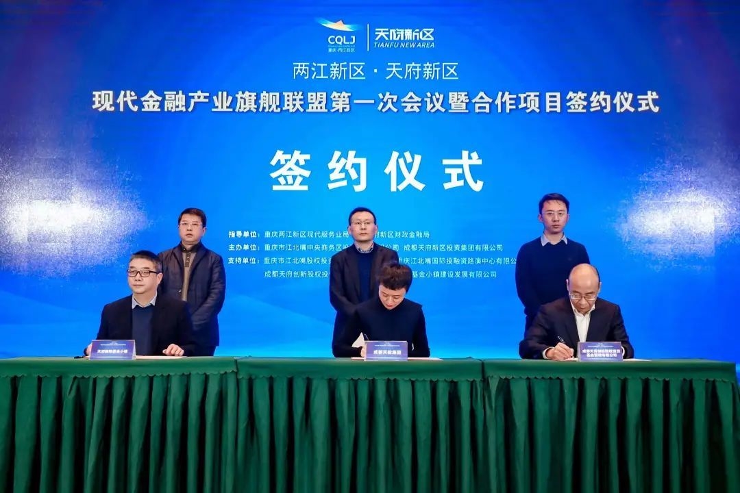 今年4月29日,重庆两江新区、四川天府新区召开共同打造内陆开放门户助力成渝地区双城经济圈建设第三次联席会。会上,重庆两江新区、四川天府新区现代金融产业旗舰联盟正式授牌并成立,开启两地推动成渝地区现代金融产业交流、合作、发展的新篇章。
