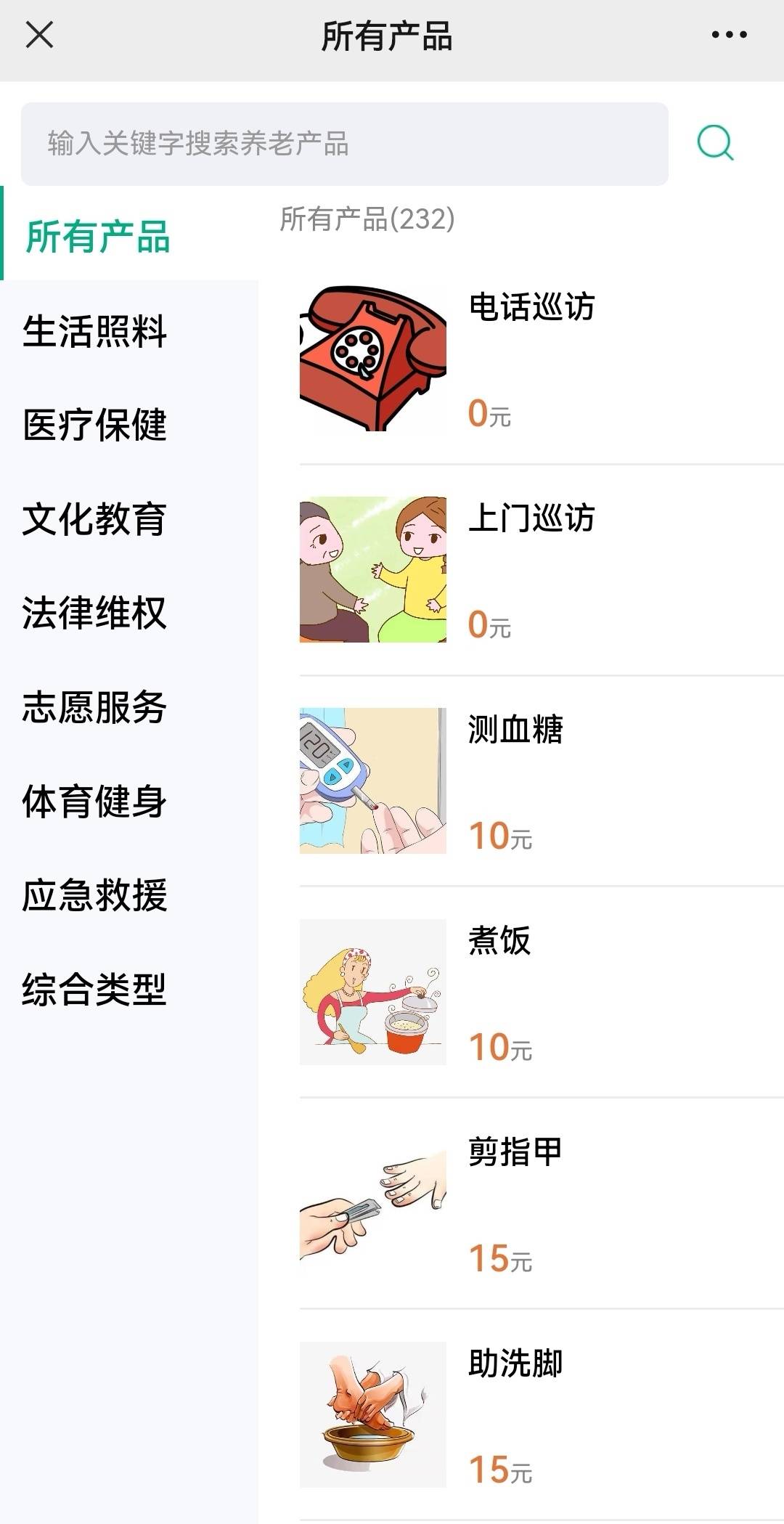 养老产品列表,老年人可按需“点菜式”提前预约服务