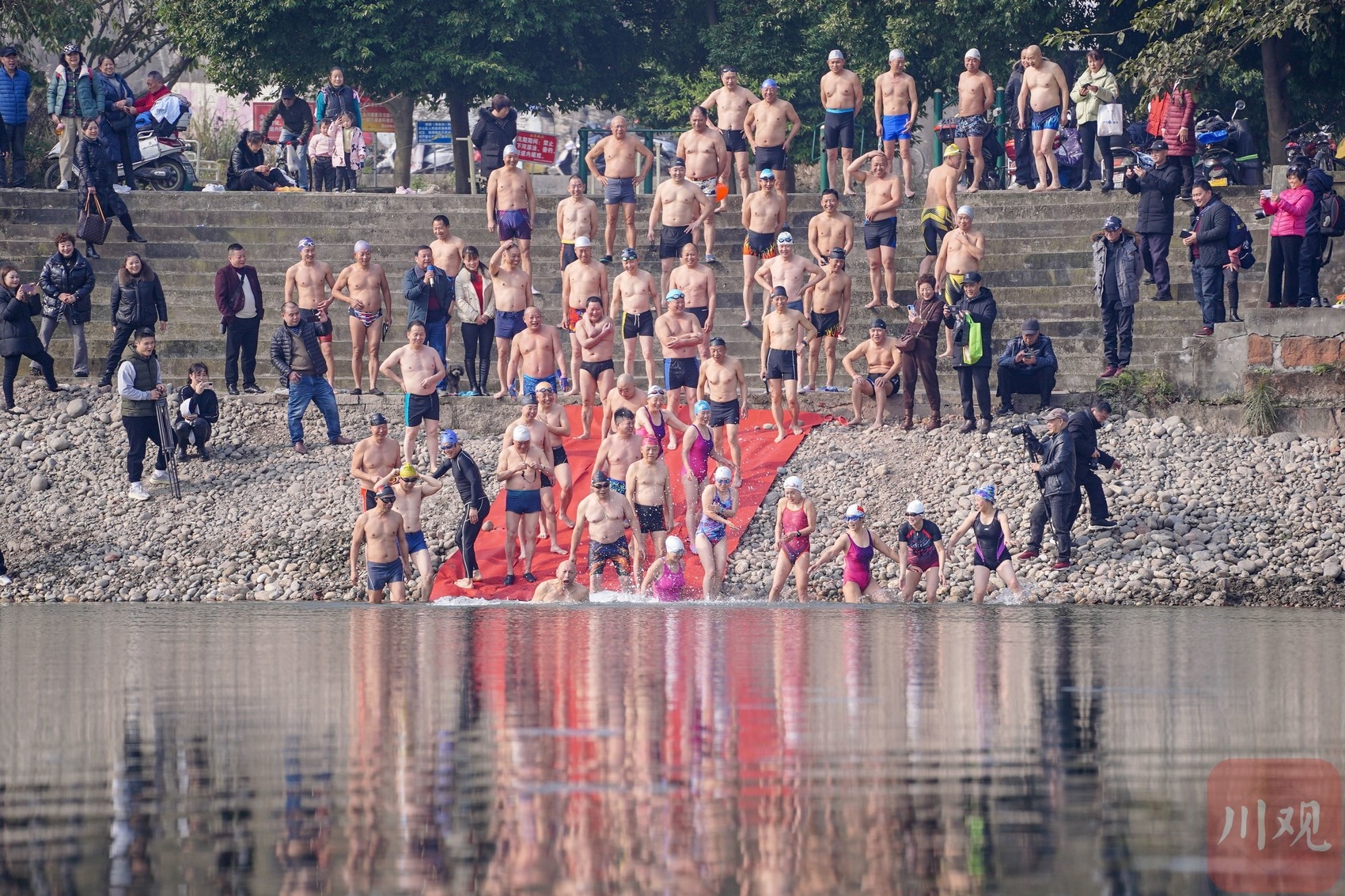 12月21日下午,眉山市彭山区百余名冬泳爱好者齐聚岷江河畔,与仅有1℃的岷江河水进行了一次“亲密接触”,为即将到来的北京冬奥会喝彩。