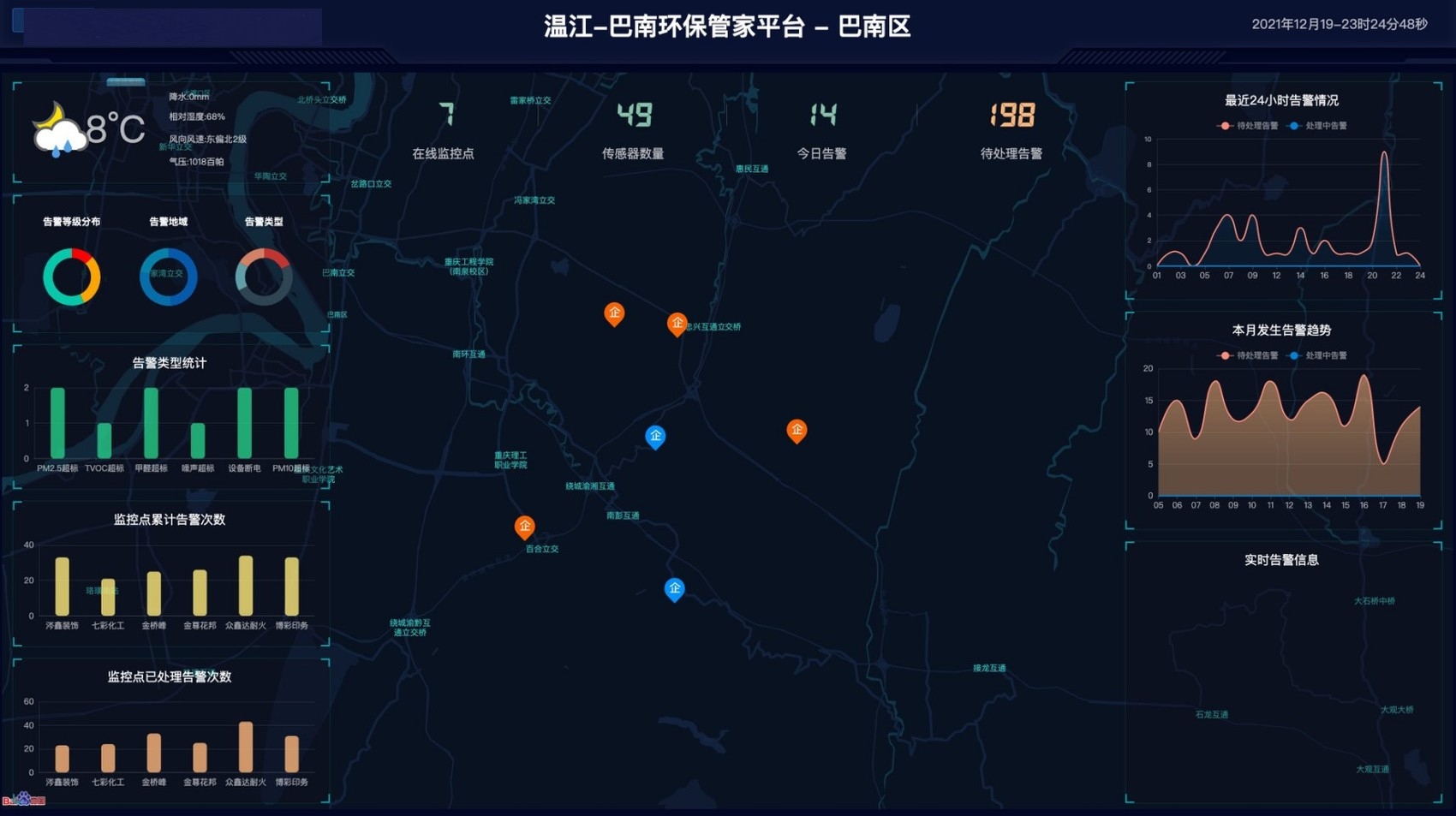 针对监管不专业、应急处置能力不足等基层环保工作的难点和痛点,“温江—巴南环保管家平台”将通过环保管家的工作模式,为环保主管部门以及企业提供了环保远程非现场执法、环保风险预警、环保大数据监管、环保网格化管理、环境监测等线上线下一体化服务模式,提升工作效能。