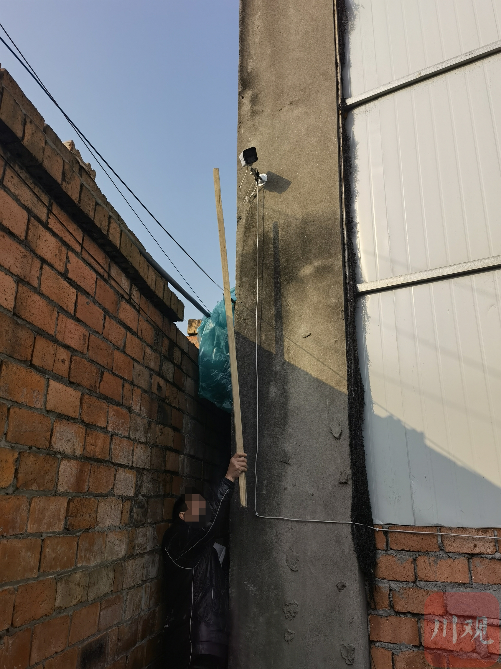 杨先生家住乐山市五通桥区竹根镇杨柳村2组。12月21日记者在他家看到,隔壁是一家木业公司的厂房,中间仅一墙之隔,厂房外墙上的监控摄像头位置较高。
