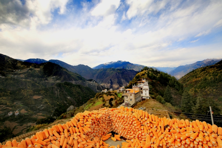丹巴农户晾晒玉米。丹巴县委宣传部供图