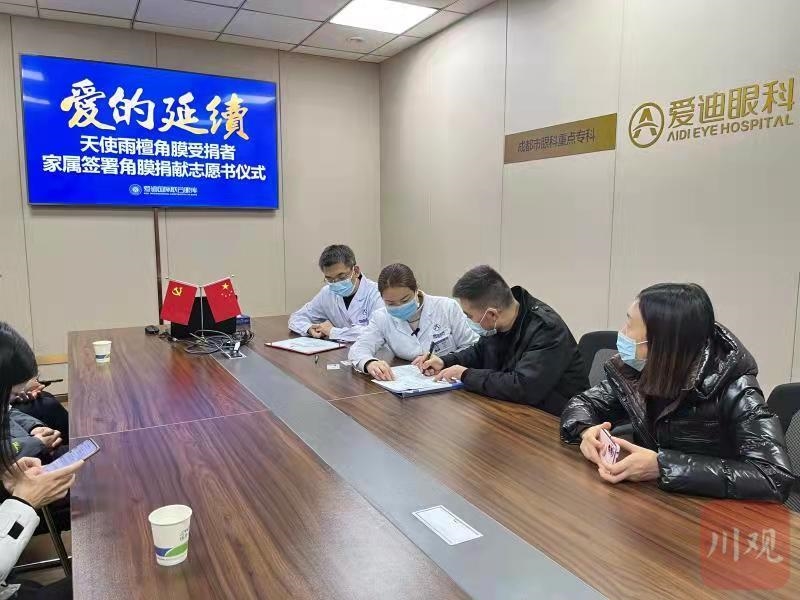 12月23日下午1时30分,“爱的延续——雨檀角膜受捐者家属签署角膜捐献志愿书仪式”在爱迪眼库举行。