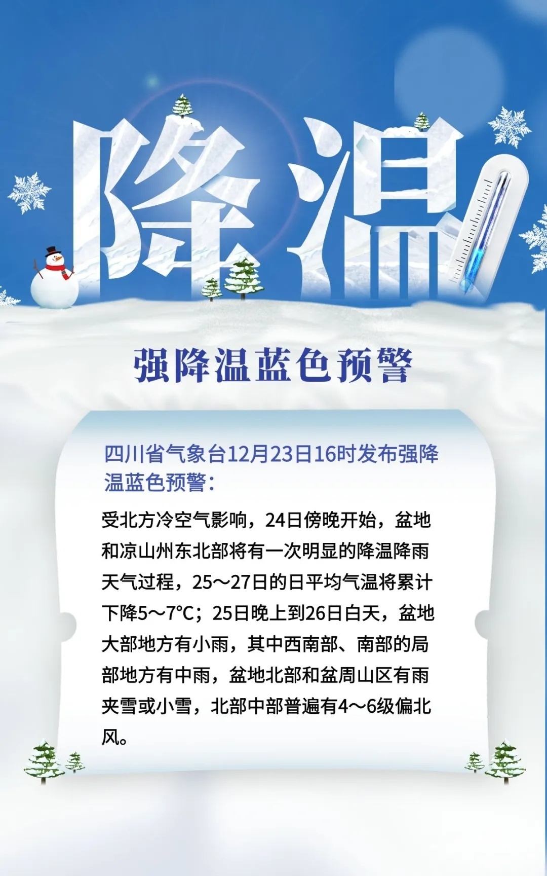 四川省气象台12月23日16时发布强降温蓝色预警: