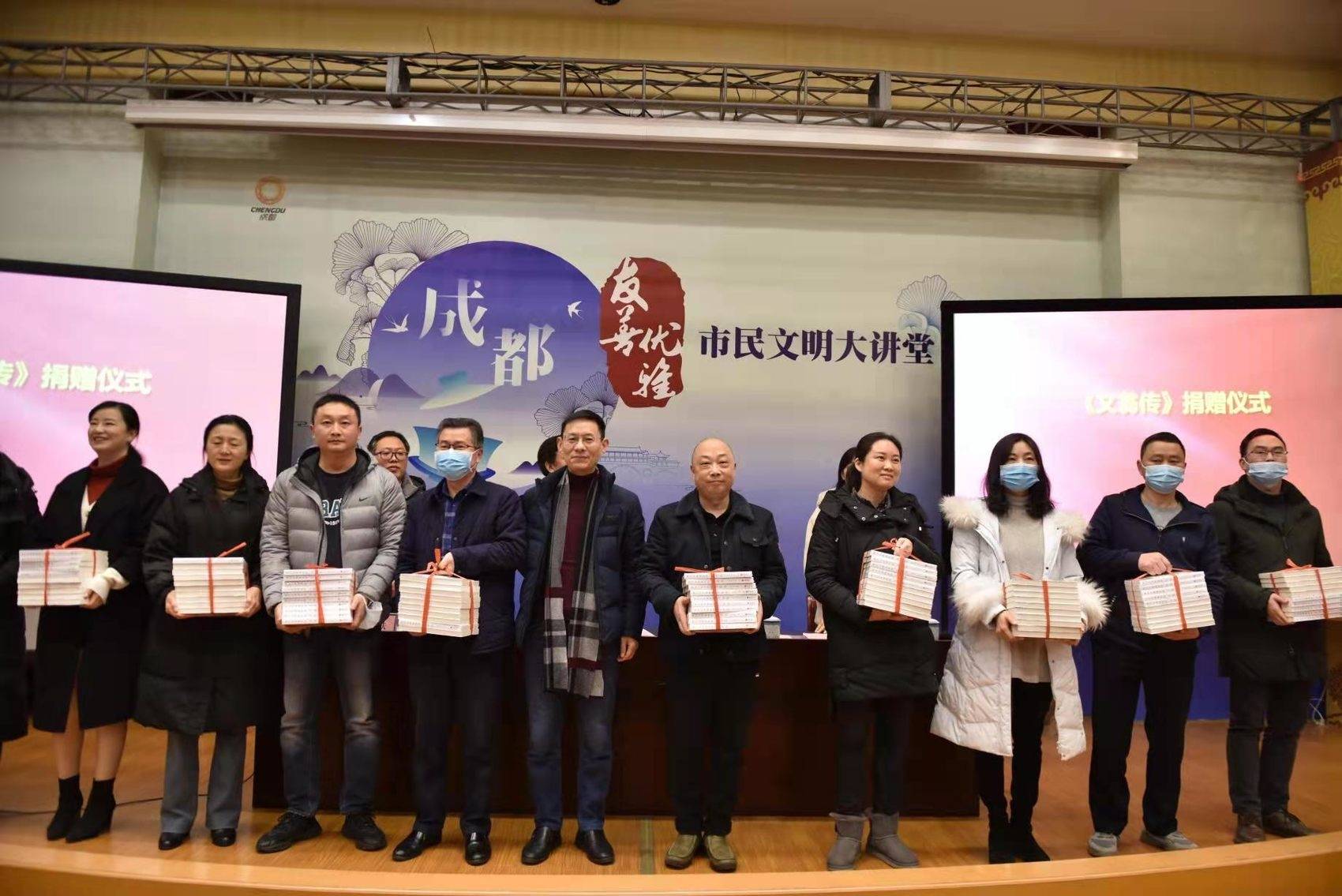 12月22日,成都市图书馆,中国传记文学学会会员、四川省作家协会会员、成都文学院签约作家郭子玖捐书仪式在这里举行。据了解,此次郭子玖向成德眉资四个市所辖图书馆捐赠了300多册他最新出版的长篇历史小说《文翁传》。