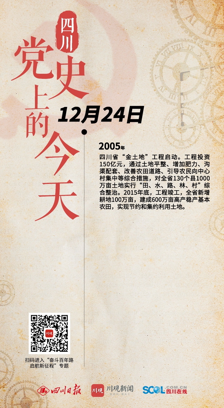 2005年 四川省“金土地”工程启动。工程投资150亿元,通过土地平整、增加肥力、沟渠配套、改善农田道路、引导农民向中心村集中等综合措施,对全省130个县1000万亩土地实行“田、水、路、林、村”综合整治。2015年底,工程竣工,全省新增耕地100万亩,建成600万亩高产稳产基本农田,实现节约和集约利用土地。