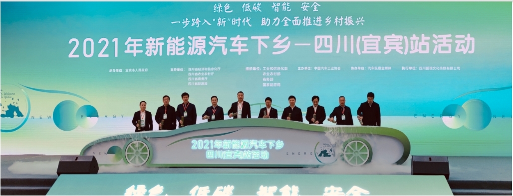 12月24日,以“绿色、低碳、智能、安全—一步跨入‘新’时代,助力全面推进乡村振兴”为主题的2021年新能源汽车下乡四川—(宜宾)站活动正式启动。