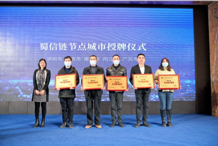 会上还举行了蜀信链节点城市授牌仪式,泸州、南充、内江、自贡、广元正式成为蜀信链第二批城市节点。蜀信链城市节点的建设推进,将进一步提升各地市在数字经济领域的资源链接能力,实现全省乃至全国生态资源互联互通,促进体系化的服务资源引入,特色化的服务能力输出。