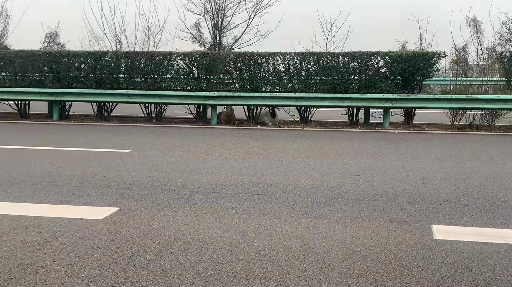 12月23日17时40分许,高速公安四支队五大队接到报警称:G93成渝环线高速三宝停车区附近有两只羊在高速上乱窜,严重影响行车秩序和安全。