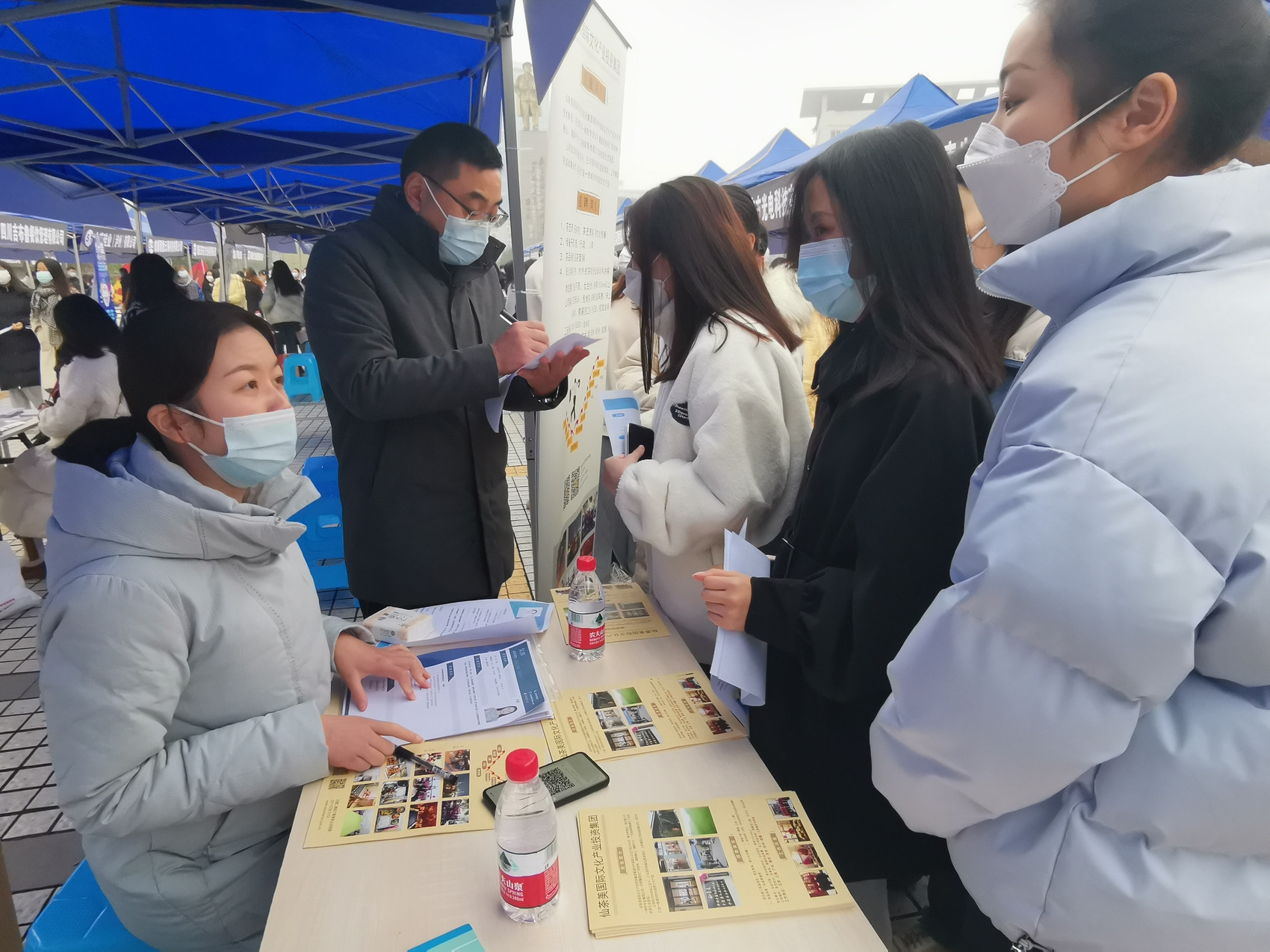 截至当天17时,毕业生现场投递简历2061份,现场参加面试1861人,当场达成意向356人。
