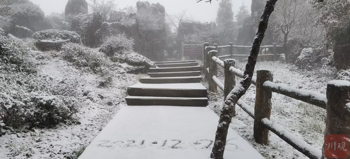 本周末,广安华蓥山旅游区迎来了降雪!12月26日凌晨,华蓥山朵朵雪花满天飞舞,将山峦、草木、村庄装点成了晶莹剔透的“北国风光”。放眼望去,恰似“山舞银蛇,原驰蜡象”。