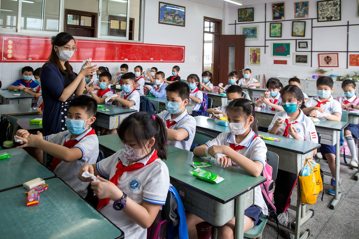 2020年5月6日,电子科大附属实验小学 返校复课后学校实行了严格的错时就餐制度。