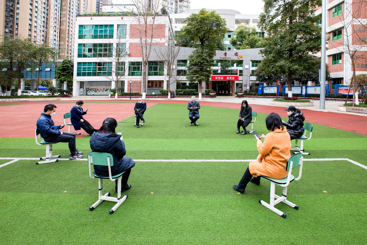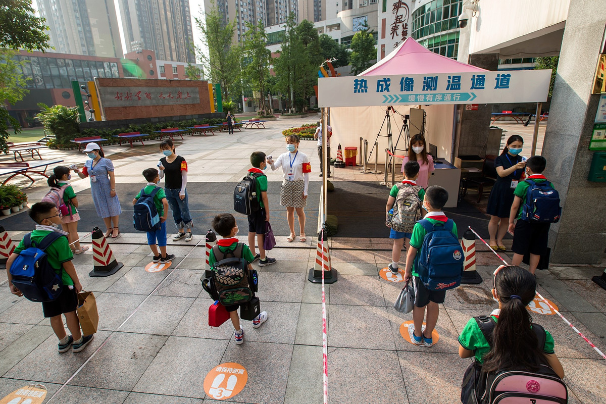 2020年6月30日,电子科大附属实验小学 返校复课后,进入校园需要接受严格的体温检测。