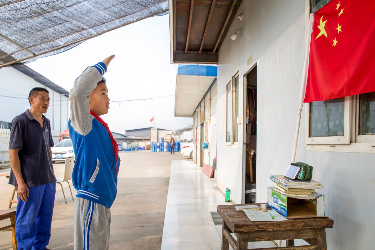 2020年3月23日,成都双语实验学校和悦校区五年级4班学生徐吴超按学校的要求参加网络升国旗活动。