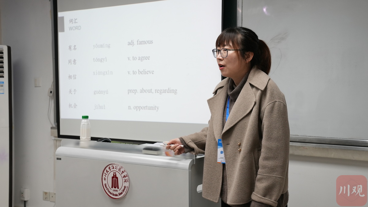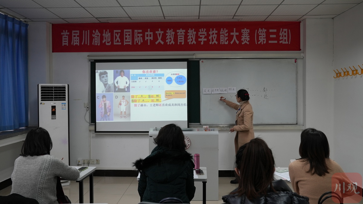 “那么现在老师想请大家思考,龙和‘Dragon’是同一种动物吗?”听到这个问题,想必大多数人都会以为可能是在教小朋友英语,然而这却是在“首届川渝地区国际中文教育教学技能大赛”上,一堂针对具有中级汉语水平外国留学生的中文课。12月25日,经过初赛选拔,来自四川大学、重庆师范大学、西南交通大学、西南大学等共16所川渝地区高校32名选手齐聚四川大学海外教育学院进行决赛,这也是川渝地区在汉语国际教育领域举办的首届规模最大、水平最高的赛事。