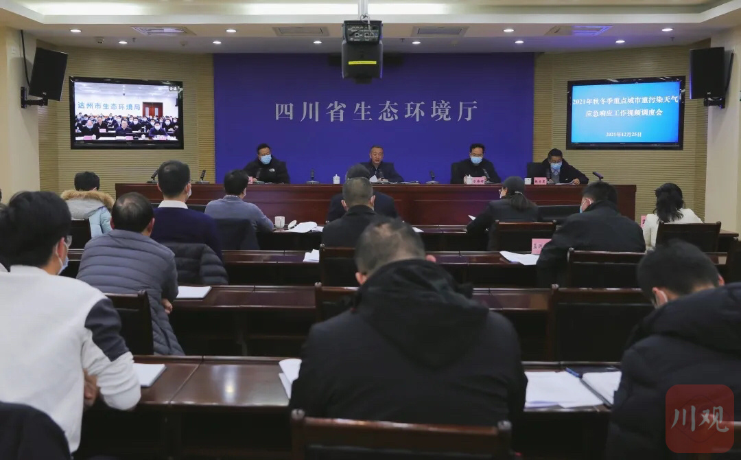 12月25日晚,四川省污染防治攻坚战领导小组办公室主任、四川省生态环境厅党组书记、厅长王波主持召开2021年秋冬季重点城市重污染天气应急响应工作视频调度会,与自贡、泸州、内江、南充、宜宾、广安、达州7市政府主要领导共同会商研判大气攻坚问题,共同发力,研究工作举措,全力遏制重污染天气,抢抓优良天。