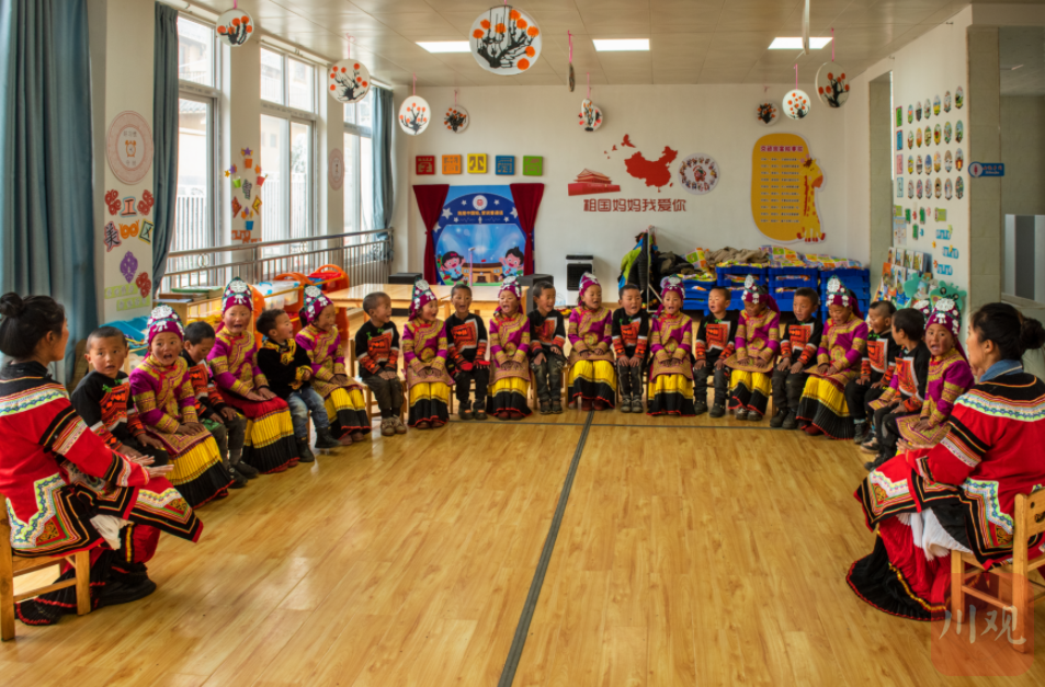 凉山州金阳县百草坡镇丙乙底村幼儿园里,彝族娃娃们学习普通话。(省委统战部供图)